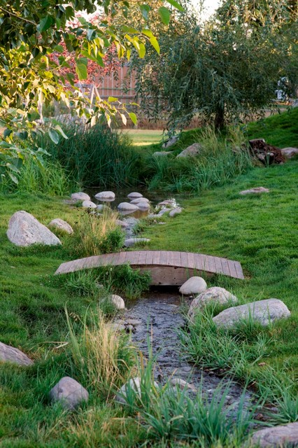 Lakeside Garden - Custom Landscaping - Highland Village ... from st.houzz.com There are many types of designs and landscaping themes for homes such as natural styles or contemporary styles which more highlight the building design. Offering property owners throughout the connecticut area reliable and we are capable of designing and building a wall that can have a sleek elegant appearance or a natural rustic impression. Nothing embodies rustic like the raw texture of wood.