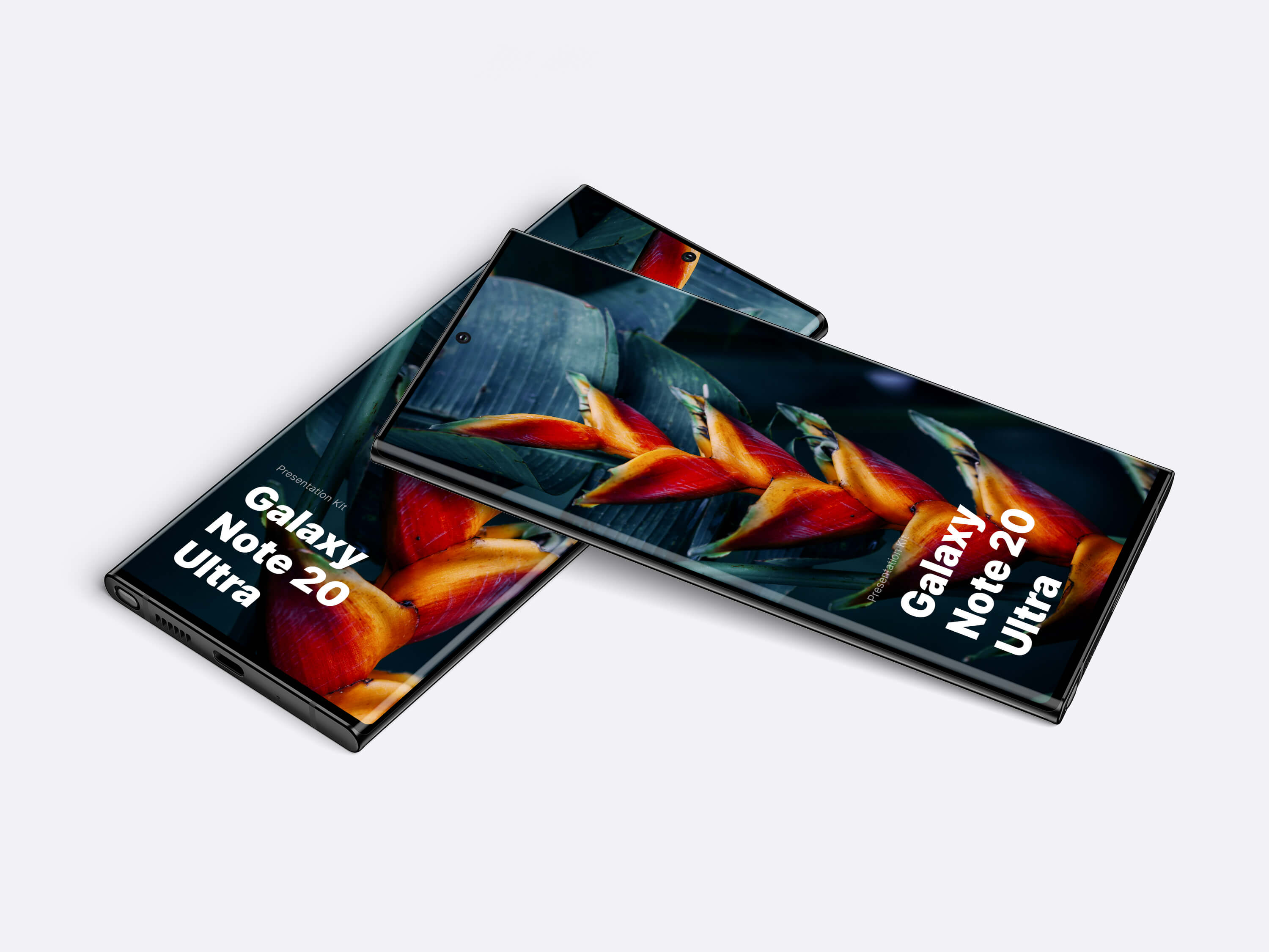 Download Galaxy Note 20 Ultra Mockup Pics. Like all of our free resources, this mockup prioritizes the needs of designers as it's provided in 3 formats including ai, eps, and psd format. All devices are fully vectorize and infinitely scalable with easily swappable background images.